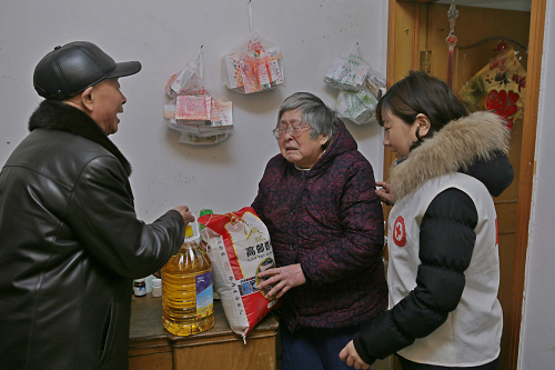 近日,在天正和鸣社区周书记的带领下,南京妇儿堂医院党支部许书记等医护人员一同来到社区王阿姨家。据介绍,王阿姨有个儿子17岁,换了淋巴癌,为了给儿子治病, 几乎花光了家里所有积蓄,生活很是困难。医院为她们送上一些生活必需品,希望能给她们这个寒冬增添一丝温暖。